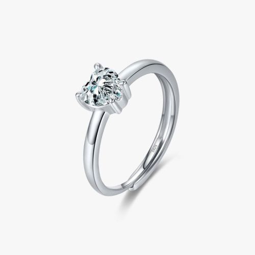 925 Sterling Silver Heart Shape Rhodium Plated Open Rings