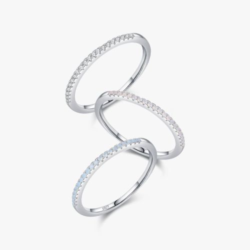 925 Sterling Silver Circle Zircon Rhodium Plated Rings